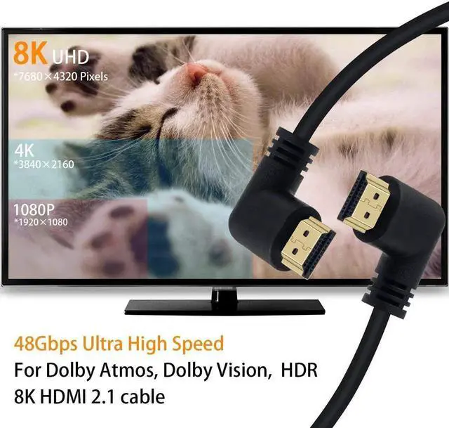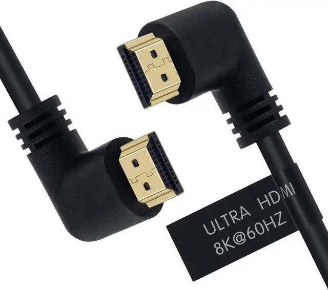 90 Degree 8K HDMI Cable Left Angle design makes the cable better fits for wall-mounted devices, solving the embarrassment of limited spaces between wall and device,Plug and Play.