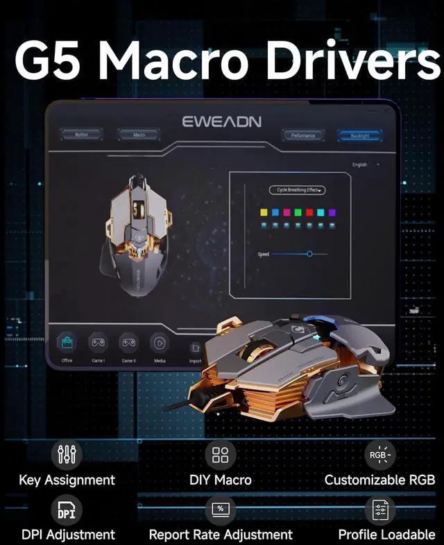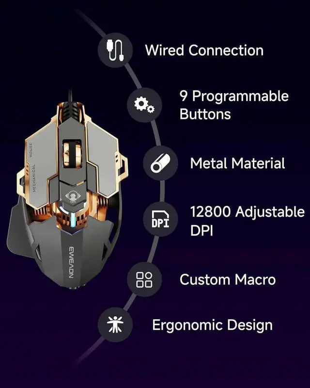 9 Programmable Buttons: Equipped with 9 programmable buttons, this PC gaming mouse allows you to customize commands for any game or workflow, including rapid fire, macros, and more. The included software offers customization for DPI, report rate, RGB lighting, and macro settings.