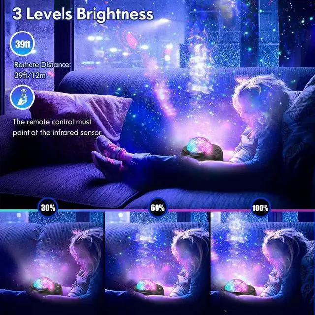 The brightness of the star projector is adjustable. You can adjust the brightness to the one you desired according to your preference. Brightness and mode vary from your demand. More than convenient to use in daily life.
