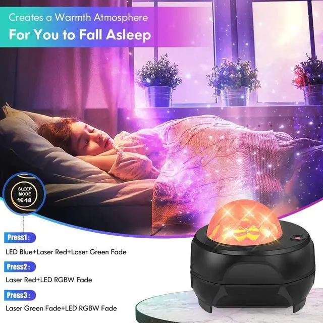 Three sleep modes. Different modes with different LED effect. Choose the mode you prefer, sleep with the star projector with unusual ambience. It will be easier to fall asleep.