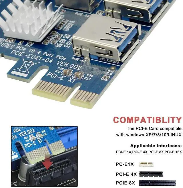 1. This extension is applicable to the mainboard PCI - E 1X slot, Please plug in the power cord for the floppy. When plug PCI - E extension must be computer broken wires plug again.