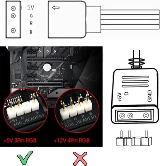 Note: female to female ARGB addressable RGB adapter cables only support 3-pin 5V addressable RGB motherboard, not support 4-pin 12V RGB connectors.