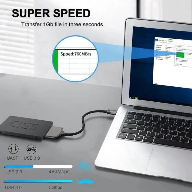 [Quickly Access to 2.5'' SSD/HDD] This SATA to USB 3.0 Adapter allows you to add driver space to you laptop by connecting to a 2.5 SSD or HDD. You can connect to an external drive to add storage, perform backups, create disk images, implement data recoveries, and transfer content to your laptop, Overall length: 9 inches Note: Only works with 2.5-inch SSDs & HDDs NOT Support 3.5-inch SSDs & HDDs