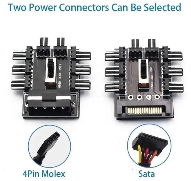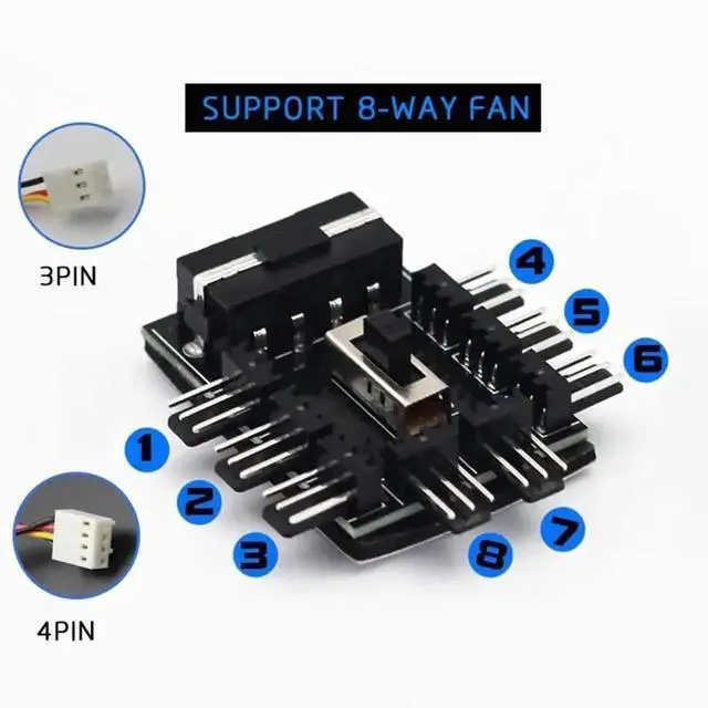 1 to 8 3Pin Fan Hub Pwm Sata Molex Splitter PC Mining Cable 12V Power Suppply Cooler Cooling Speed Controller 4PIN Adapter