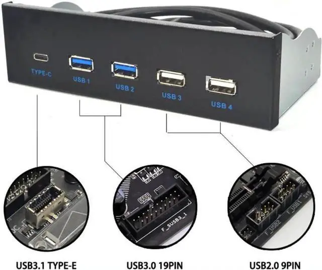 5.25 Inch USB 3.1 GEN2 Front Panel USB Hub 2 Ports USB 3.0 + 2 Ports USB 2.0 + 1 Port TYPE-C with TYPE-E Connector for Desktop PC