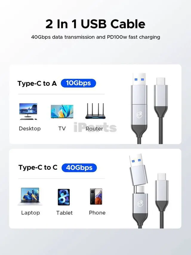 Data Cable: 2 in 1 USB C to C/A Cable(30cm)