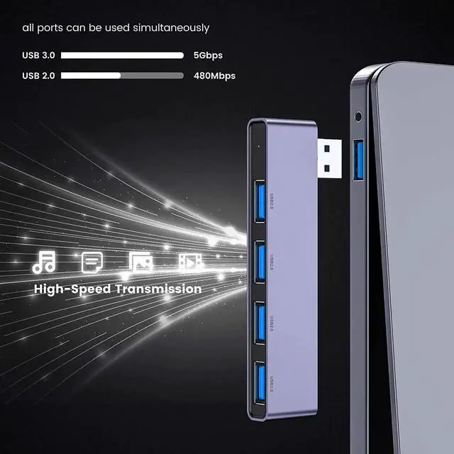 The USB Hub tansfer a single USB port into 4 USB data ports. you can get 1 USB 3.0 and 3 USB 2.0 ports with your laptop. No software drivers or complicated installation process requirement. Our usb port expander for laptop contains 1*USB 3.0 and 3*USB 2.0. The USB 3.0 supports super faster data transfer up to 5Gbps which is 10X faster than USB 2.0 (480 Mbps) which allows you to transfer datas in just seconds; USB extension hub was built in OTG function chip it can easily connect the mouse keyboard USB disk and other USB devices.