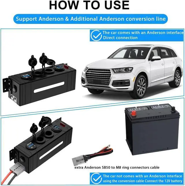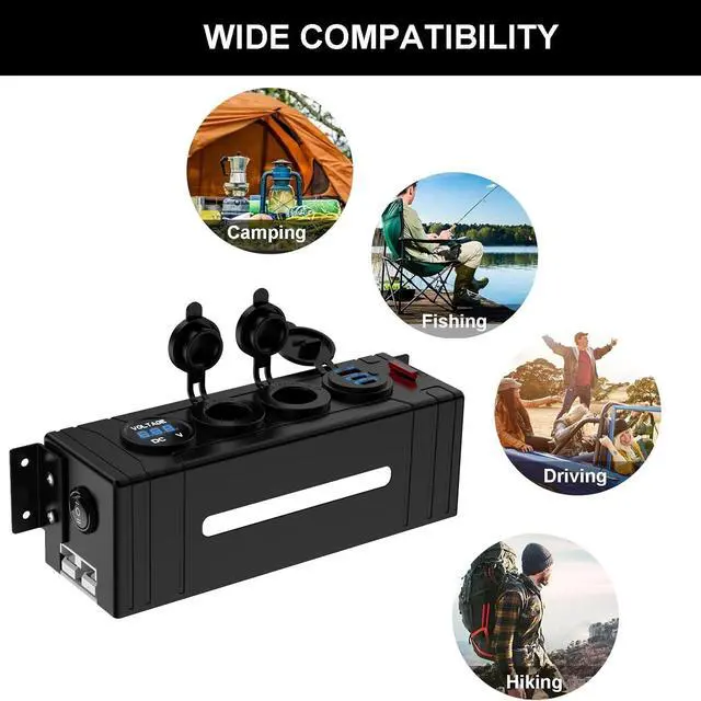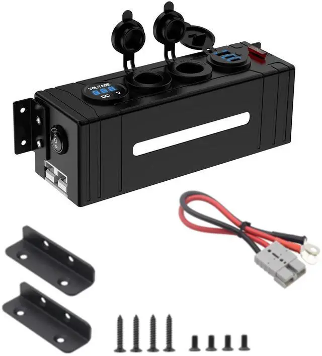 EL Car Charger for RV/Marine Use USB-C 1 USB Ports Voltmeter Cigarette Lighter Adapter ABS IP65 Rated QC3.0/PD Output CE