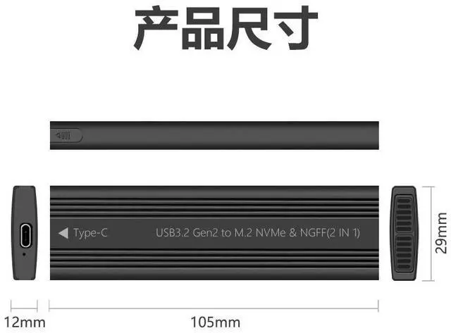 M.2 NVME/Ngff SATA Dual Protocol SSD Enclosure USB C 3.2 Gen2 10Gbps PCIe USB Adapter External Solid State Drive Case Type C HDD