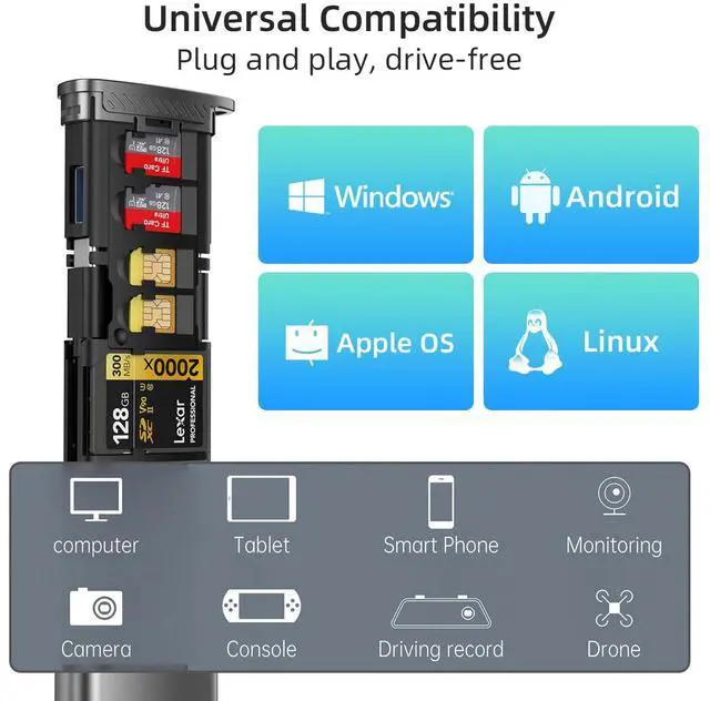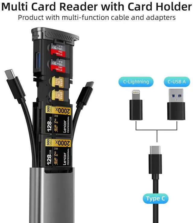 USB 3.0 OTG Adapter Card SD TF Card Reader Type C Carrying Case for Cameras and Smartphones