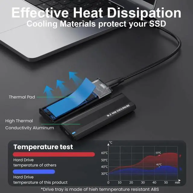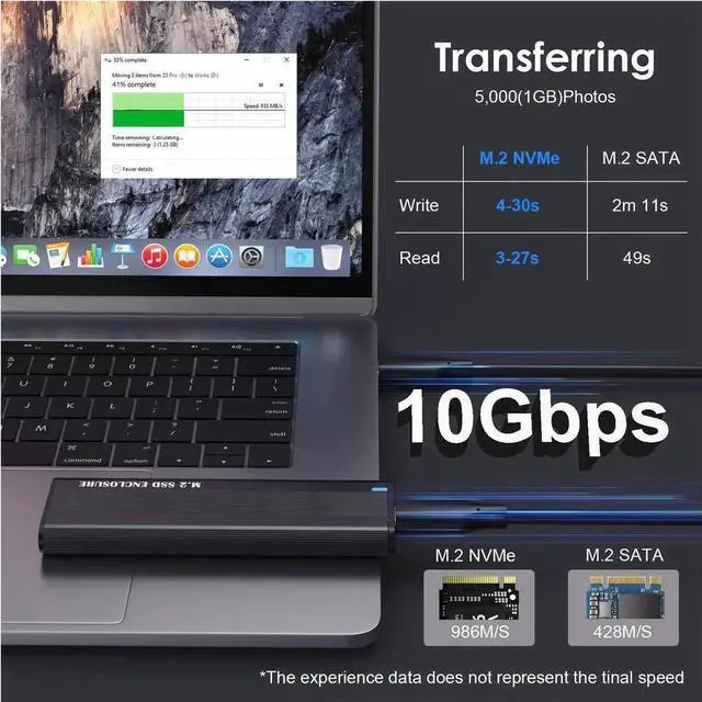 Vszerda M.2 NVME SATA SSD Enclosure adopts high-performance controller Chipset RTL9210B, with high-speed data transmission speeds up to 10Gbps. 1GB file only takes 1 second ;