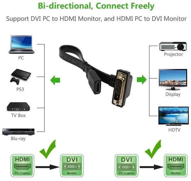 1. allow you to connect your HDMI-equipped source devices such as your Laptop/ Desktop, Blu-Ray, Xbox 360, PS3, TV, DVD, and Set Top Box to your DVI-enabled HDTV, Displays or Projectors.