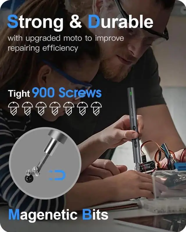 Widely ApplicableThis rechargeable power screwdriver includes 48 precision bits, including Phillips, Torx, Pentalobe, Flathead, Hex, etc., Suitable for the quartz watch, camera digitals, radios, tablet PC, cellphones, drones, joystick, laptop, iPhone, Eyeglass, Macbook, Xbox and toys, etc.