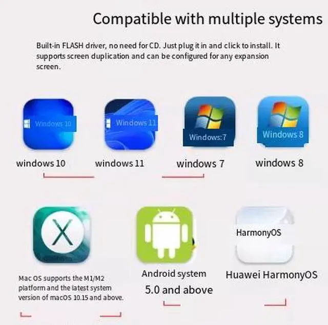 Built-in FLASH driver, no need for CD. Just plug it in and click to install. Itsupports screen duplication and can be configured for any expansion screen.