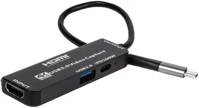 Type-C Video Capture Card with 100W PD Pass-Through HDMI to USB 3.0/Type-C Capture Box, 1080P@60Hz Recording, MS2130, Portable Docking Station for Live Streaming/Game Recording