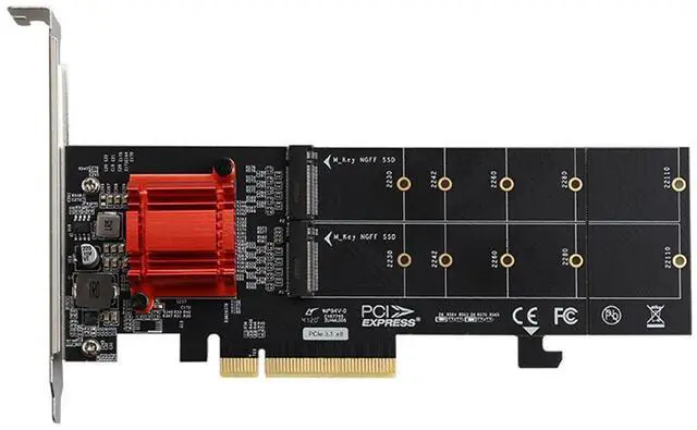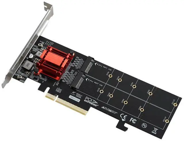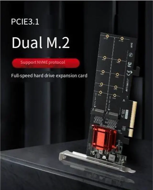 Maximize your system's storage potential with this PCIe 3.1 x8 to Dual M.2 NVMe SSD Adapter Card. Designed for enthusiasts, content creators, and professionals who demand high-speed storage, this expansion card allows you to install two M.2 NVMe SSDs into a single PCIe slot, dramatically increasing your system's storage capacity and performance.