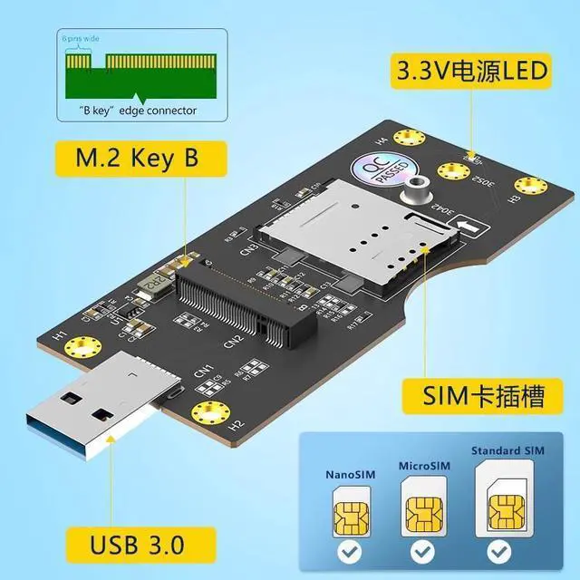 Add cellular connectivity to virtually any system with this M.2 Key B to USB 3.0 Adapter with SIM Card Slot. Designed for users who need to leverage 3G, 4G LTE, or 5G M.2 modules in systems without built-in M.2 slots, this adapter converts M.2 Key B cellular modems into a convenient USB 3.0 peripheral, enabling high-speed mobile broadband for desktops, laptops, embedded devices, and industrial applications.
