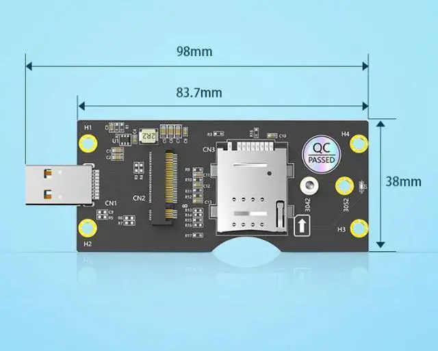 The adapter features an integrated SIM card holder, allowing you to insert a standard SIM card directly onto the board for seamless cellular connectivity. It supports M.2 Key B modules in popular 3042 (30mm x 42mm) and 3052 (30mm x 52mm) sizes, accommodating a wide range of cellular modems from leading manufacturers.