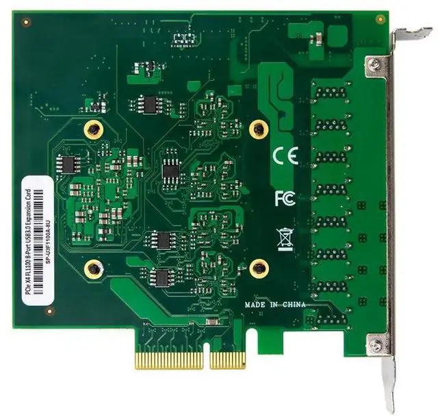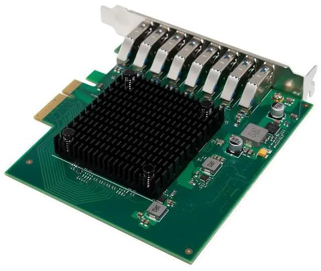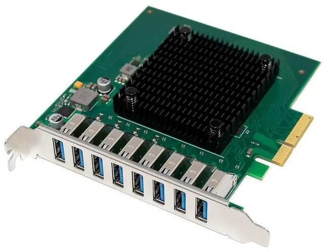 Each of the eight ports supports USB 3.2 Gen 1 (SuperSpeed USB) with data transfer rates up to 5Gbps10x faster than USB 2.0. With 40Gbps total aggregate bandwidth, this card delivers the throughput required for simultaneous operation of high-speed devices such as external SSDs, video capture devices, and multi-port hubs.