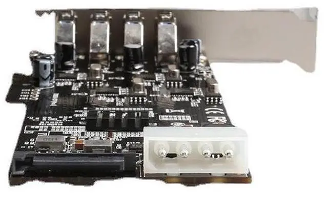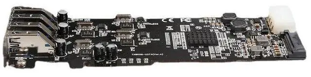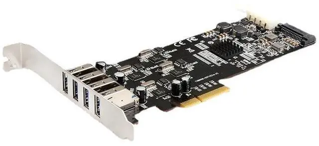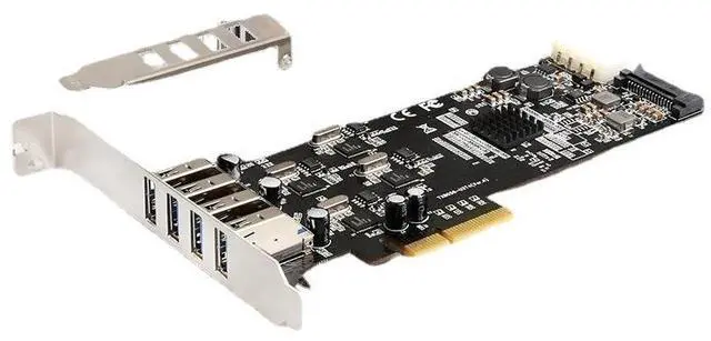The Pericom PI7C9X2G608GP PCIe packet switch provides intelligent lane distribution from the PCIe x4 host interface to the four independent USB controllers, ensuring stable signal integrity and efficient data flow even under heavy concurrent loads.