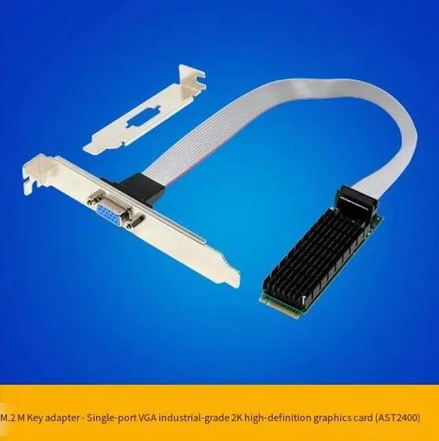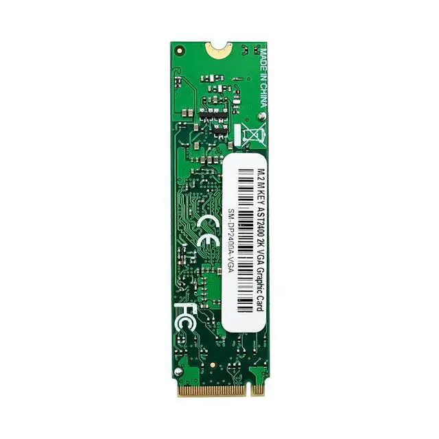 Add reliable VGA display capability to your server, industrial PC, or embedded system with this M.2 M Key to VGA Graphics Card. Powered by the ASPEED AST2400 graphics controller, this compact adapter converts an M.2 M Key PCIe slot into a standard VGA output, providing essential display functionality for systems without integrated graphics or requiring dedicated management video.
