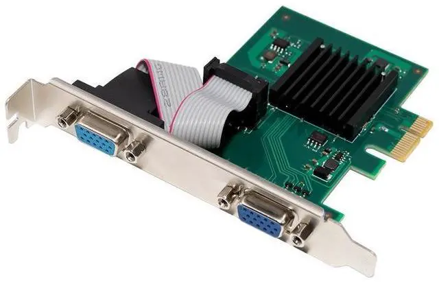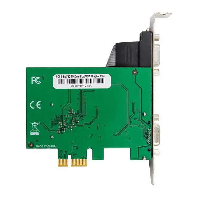 Add reliable dual-display 2D graphics capability to your industrial or embedded system with this PCIe x1 Dual VGA Graphics Card. Powered by the SM750 2D graphics engine, this low-profile adapter provides two independent VGA outputs with resolutions up to 1920 x 1440, making it the perfect solution for industrial control panels, HMI (Human-Machine Interface) displays, digital signage, medical equipment, and embedded applications.