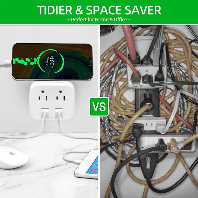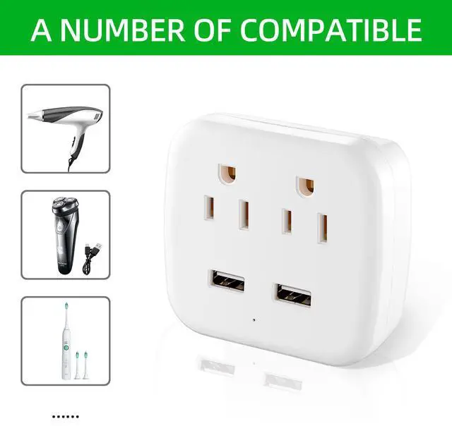 Not enough outlets in your home office? Kitchen counters crowded with chargers? The LE-03 US Plug Adapter solves the problem. Simply plug it into any standard US wall outlet instantly you have 2 AC outlets and 2 USB charging ports. No wiring, no installation, no hassle.
