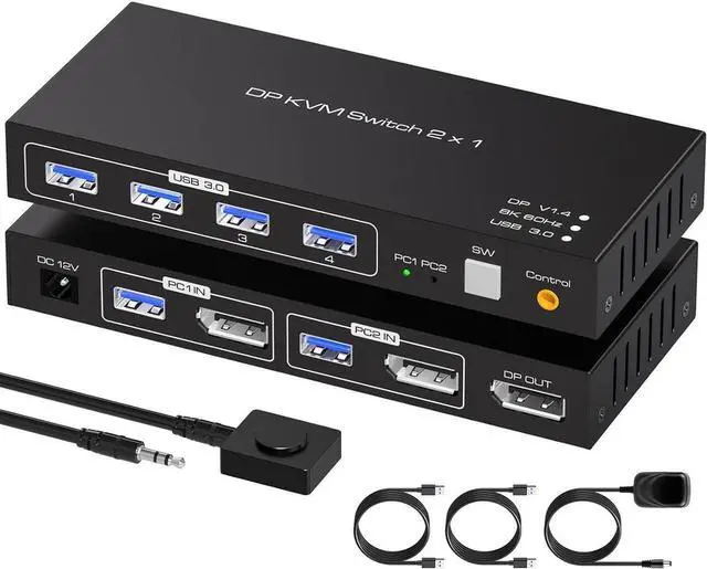 [DisplayPort KVM switch] Supports 2 computers sharing a set of mouse, keyboard and monitor. it can be easily switched between the 2 PCs. the 2 computers share 4 USB 3.0 interfaces, which can be connected to a USB hard disk or other usb devices connect to KVM.