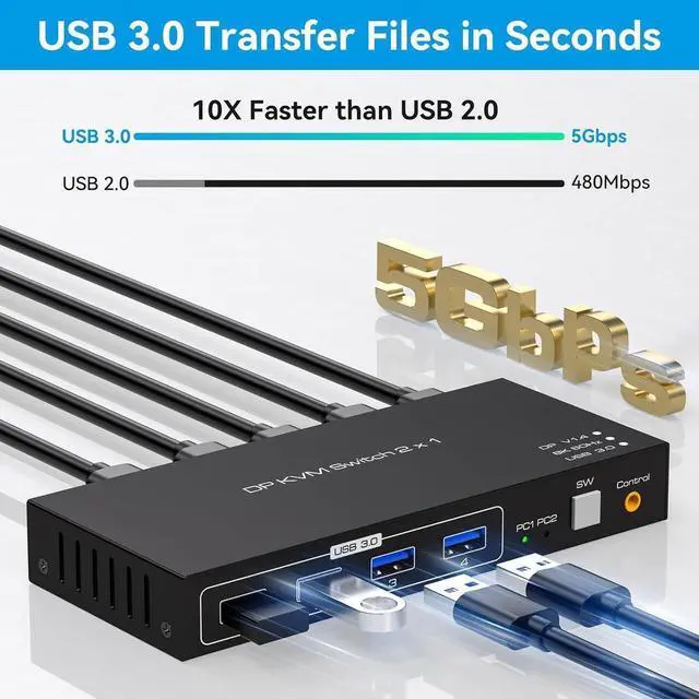 [Usb 3.0 KVM] Supports usb 3.0 high-speed transmission up to 5Gbps, and can be connected to high-bandwidth usb 3.0 devices such as usb hard drives, USB cameras, and video devices for perfect use.