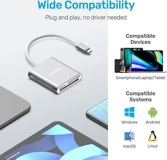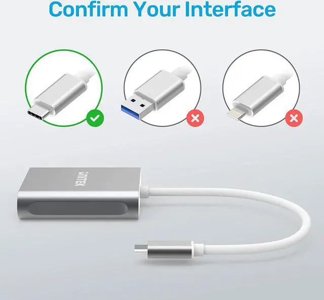 USB C Card Reader: easily transfer data from a memory card to your USB Type-C ( or Thunderbolt 3 Port) computer or tablet, such as MacBook Pro 2019/2018/2017/2016, MacBook 2017/2016/2015, iPad Pro 2018, Surface Book 2, Samsung Galaxy S10/S9/S8/Note 8/Note 9, Pixelbook, Dell XPS 15 / XPS 13, Galaxy Book; Thunderbolt 3 is the same port type as USB-C. BUT Thunderbolt 1& 2 is not the same port type as