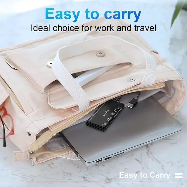 Slim Card Reader & Compact DesignCompact usb card reader is a great kit for travel. Multi-Card Reader Adapter comes with reinforced usb 3.0 cable, sturdy exterior and heat-resistant connectors ensure high data transmission efficiency and ultimate durability. 13CM USB Removable cable tail would reduce stress on the USB port on your computer and won't affect the use of adjacent ports.
