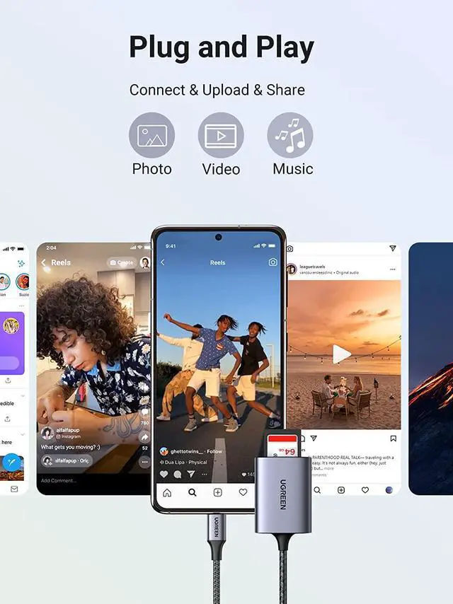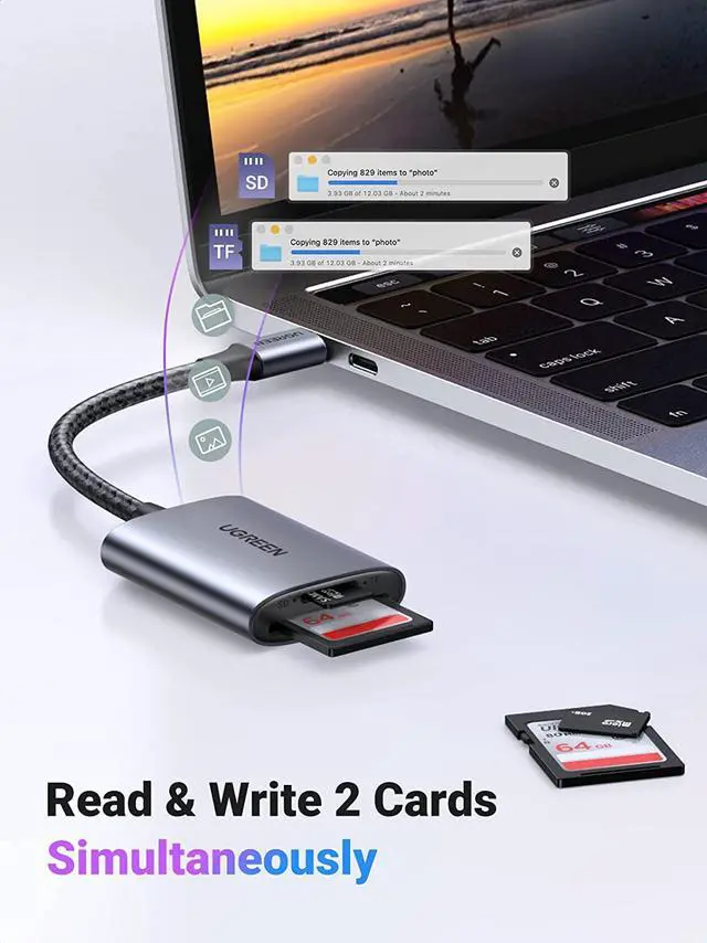 Note: This SD card adapter supports UHS-II SD/TF cards, but the speed will be UHS-I