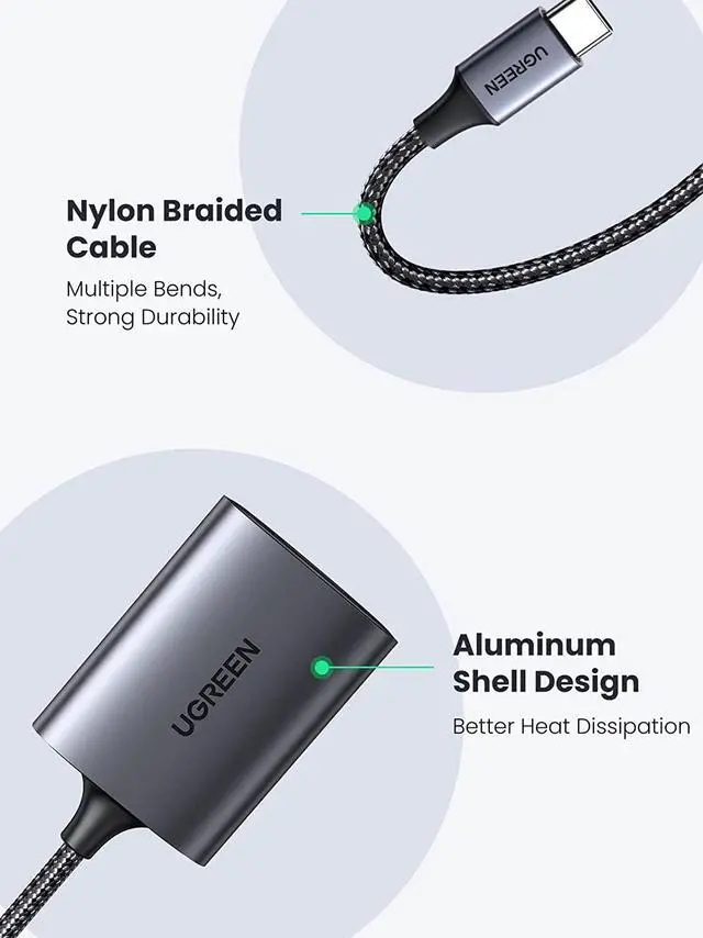 Compact and Durable: The SD card reader USB C comes with small and compact size, which is easy to carry for travel. The aluminum casing and the nylon braided cable ensure a long-term use