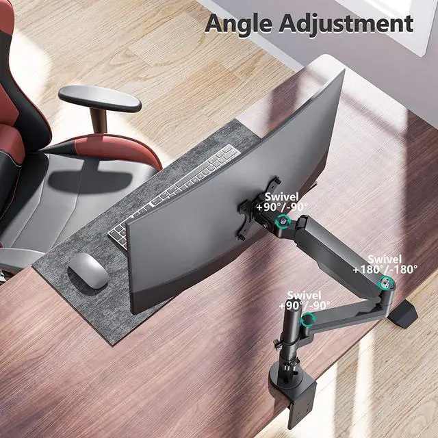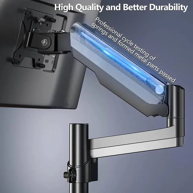 Fully Adjustable: The gas spring stand can tilt +35°/-35°, swivel +90°/-90°, and rotate 360°. Max height is up to 23.62", and max extension is up to 18.34".
