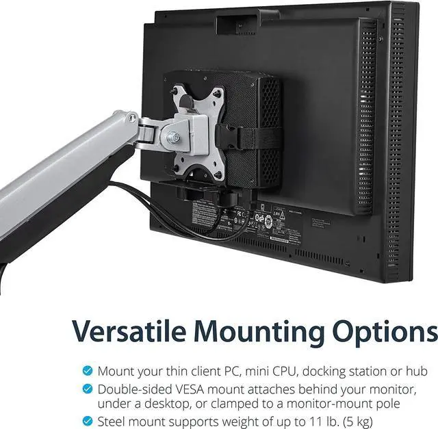 DURABLE DESIGN: Built for ultimate durability, this thin client CPU holder can support up to 11 lbs / 5 kg. It features adjustable straps to keep your device from moving and rubber pads to protect and to prevent damage on your device.