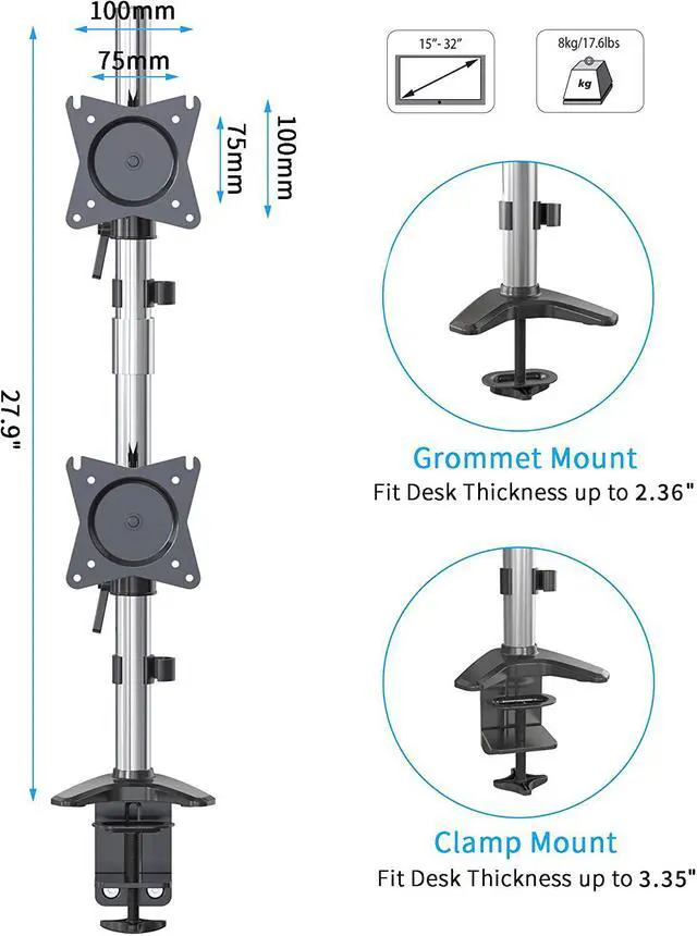[TWO WAYS TO MOUNT] C-clamp (max width of 2.4 /60mm) on any working surface OR grommet installation (max width of 2.5" /63mm). Our desk mount comes with all necessary parts. Its quite easy to install and use, both desk clamp and grommet mounting available in the box.