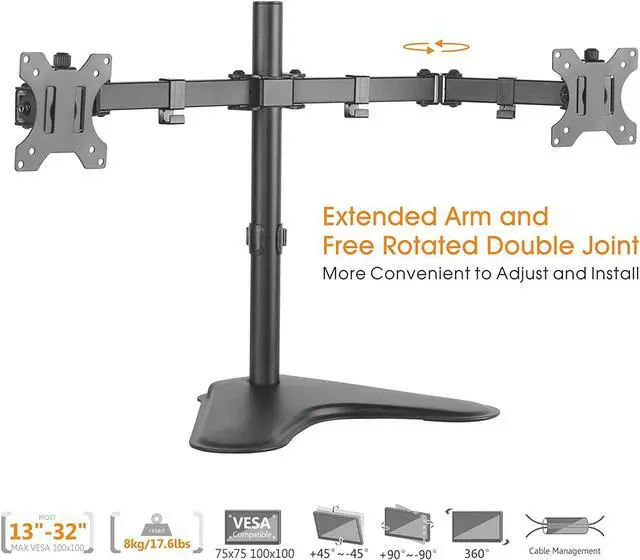 Fits most flat panel monitors from 13" to 32". Supports up to 17 lbs per monitor.