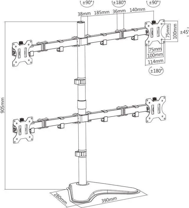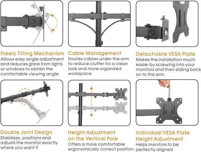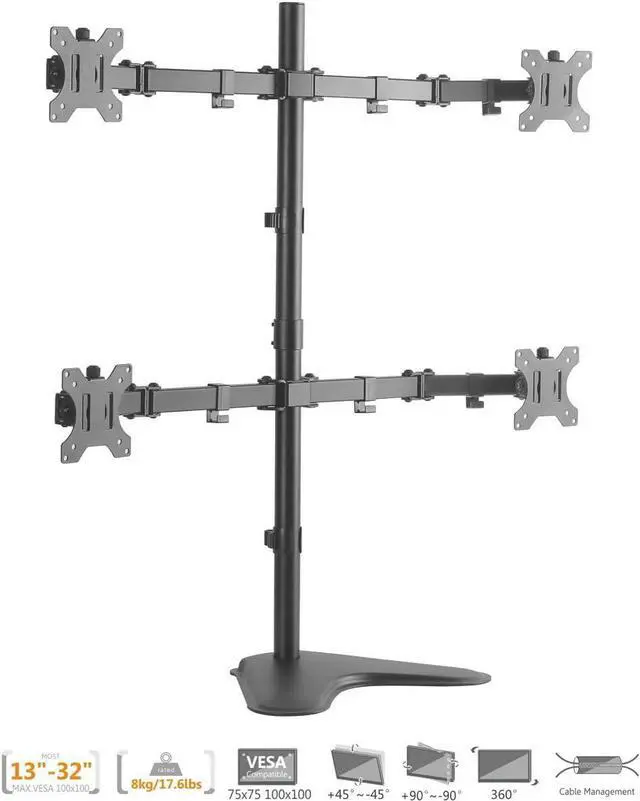 Fits most flat panel monitors from 13" to 32". Supports up to 17 lbs per monitor.
