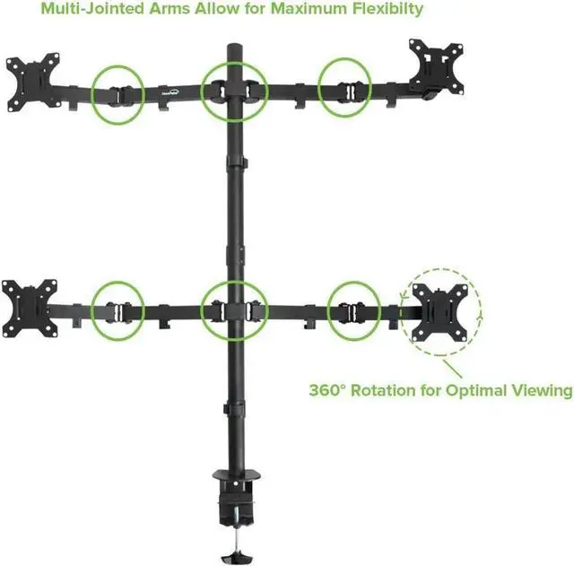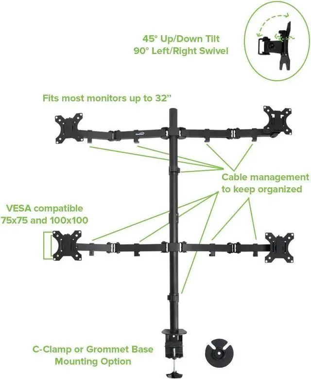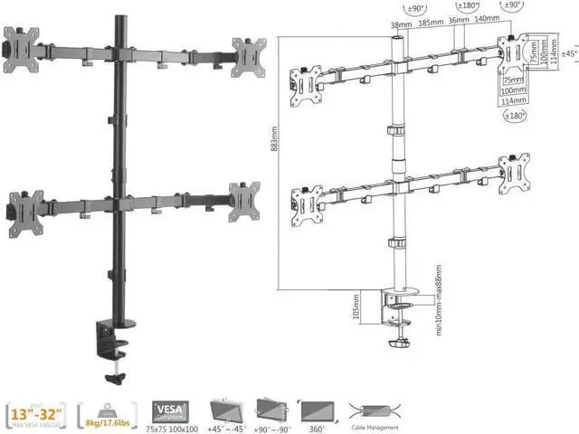 Fits most flat panel monitors from 13" to 32". Supports up to 17.6 lbs for each monitor