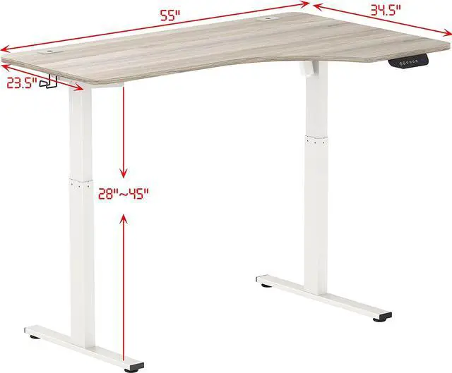 Dimensions: 55" W x 34.5" D x 28-45" H ( 139.7 cm W x 87.6 cm D x 71.1 ~ 114.3 cm H).