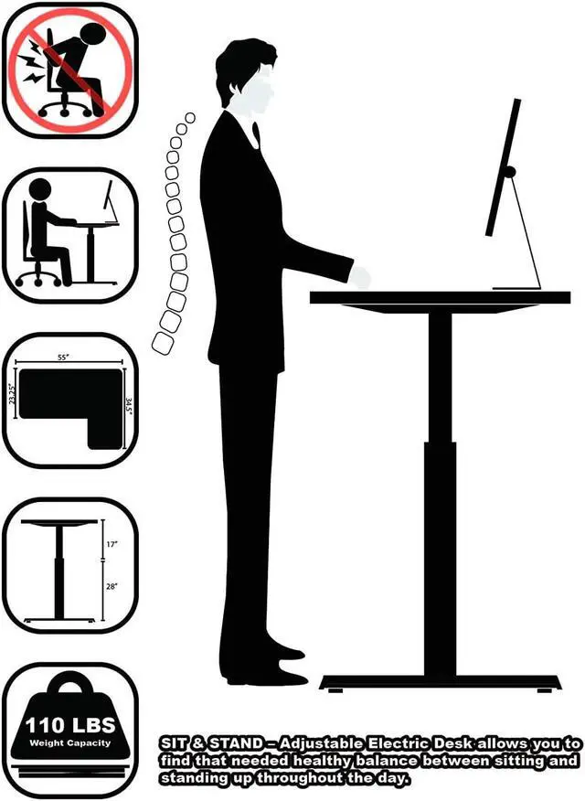 Telescopic Height Adjustment - The strong legs use telescopic adjustment transitioning from sitting to standing from 28" to 45" ( 71.1 cm to 114.3 cm).