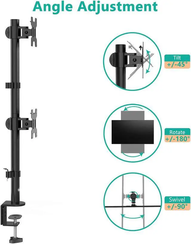 Adjust: easily with quick detach VESA plate +45°/-45° tilt and +90°/-90° swivel, to change reading angles, and 180° rotate from Landscape to portrait mode.