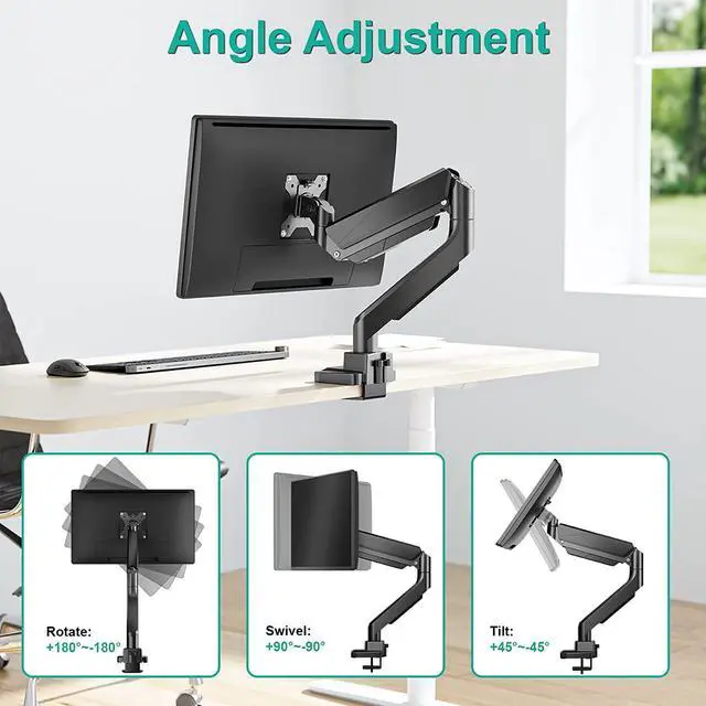 Sturdy Construction: The high-grade material gas spring arm can be extended and retracted, +45°/-45° tilt and +90°/-90° swivel to change reading angles, and 180° rotate from landscape to portrait mode.