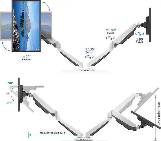 Adjustability: -90-85º tilt, 90º swivel, and 360º rotation. Easily switch between portrait and landscape mode