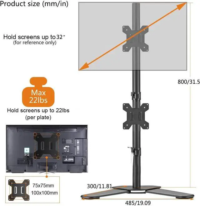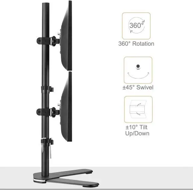 Strong steel arm mounts screens up to conveniently free up desk space. Each hold 13-32" monitor with a max load capacity 22lbs.