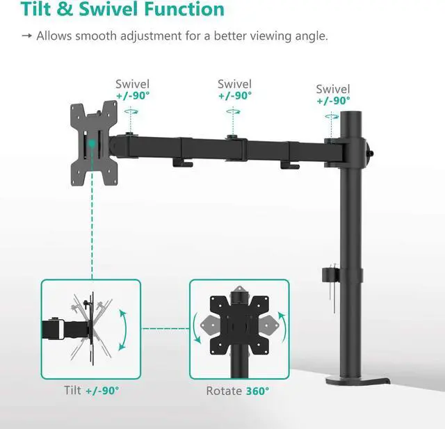 Dynamic: Our monitor arm is easily adjustable, allowing you to work in a more comfortable, ergonomically correct position to reduce neck and eye strain. The contemporary design will surely assimilate into nearly any environment, it is ideal for homes, dorms, schools, businesses, offices, IT networks, manufacturing plants, etc