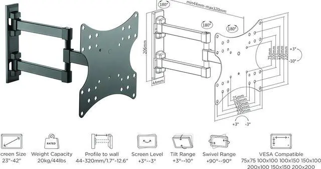 Will support any size flat panel TV's between 13" and 30" Swivels left and right up to 180 degrees and tilt upwards and downwards up to 15 degrees. Maximum Weight Capacity: 33 lbs.