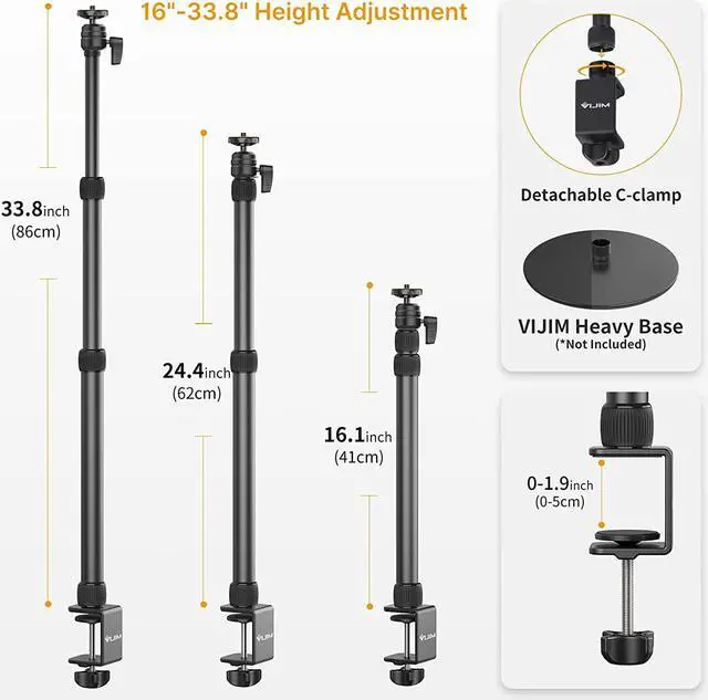 Stable Padded C-Clamp: The c-clamp is detachable, master pole can put on PICTRON heavy base. C-clamp is expandable up to 5 Centimetre/ 19.7 inch, compatible with most desk in the market and provides maximum stability.