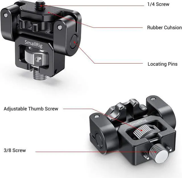 STABLE MOUNTINGSecured tightly to the cage or any accessories that come with a 3/8 locating hole for ARRI standard, such as SMALLRIG a7iii cage 2087 or NATO handle 1955