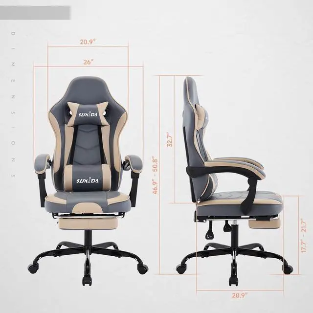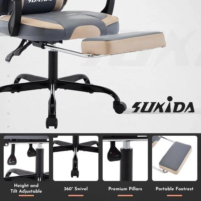 SUKIDA Gamers Choice Gaming Chair - Gaming Chairs for Adults 300lbs, Ergonomic Gamer Gamingchair with Footrest Cool Pc Computer Comfy Fabric Swivel Recliner Adjustable Massage Lumbar, Grey Blue
